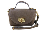 Skórzana torebka z zamszowym akcentem - Brązowa ciemna