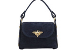 Listonoszka damska na szerokim pasku skórzana - Granatowa