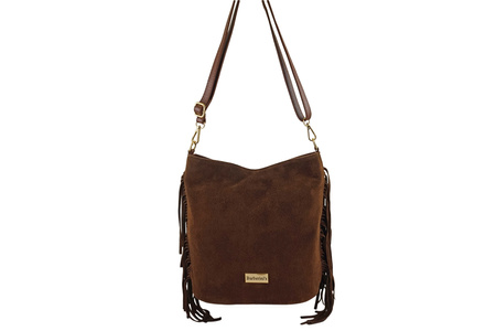 ( ilość produktów: 194 )Zamszowa torebka boho z frędzlami - Brązowa ciemna