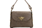 Modna torebka damska z zamszową klapką - Szara ciemna