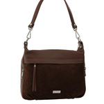 Skórzana torebka z zamszowym akcentem - Brązowa ciemna