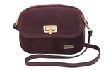 Mała zamszowa listonoszka ze złotym zapięciem - Bordowa