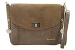 Skórzana torebka listonoszka z klapką - Beżowa ciemna