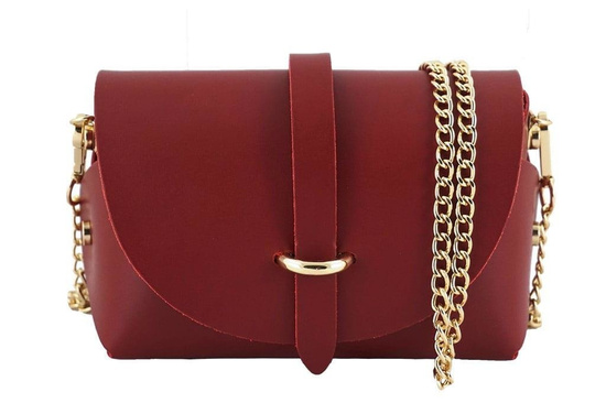 Wnętrze listonoszki: modne listonoszki wizytowe są bezszwowe, surowo wykończone, posiadają złote okucia. Zapinane są paseczkiem przechodzącym przez złotą ozdobną szlufkę. Długość łańcuszka listonoszki 120cm.