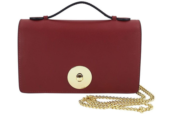 Wnętrze torebki: komora główna jest wykończona podszewką. Wewnątrz wyodrębniono poręczną zasuwaną kieszeń, na całej szerokości torebki. Wygodnym rozwiązaniem jest możliwość noszenia torebki na różne sposoby - pojedynczy lub podwójny łańcuszek oraz skórzany uchwyt do noszenia w ręce. Torebka zamykana jest ozdobnym metalowym zapięciem. Długość łańcuszka: 130cm, wysokość pojedynczego łańcuszka: 57cm; wysokość podwójnego łańcuszka: 29cm.