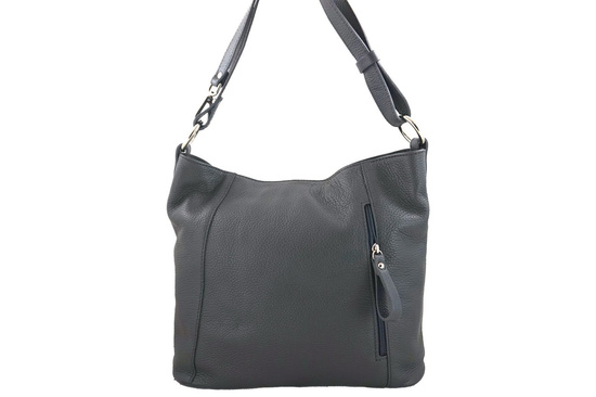 Opinie o Pojemny skórzany worek na ramię - Szary ciemny