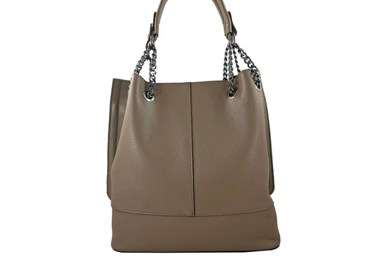 Modna torebka skórzana damska została wyprodukowana we Włoszech, wykonana ze skóry naturalnej licowej. Propozycja sklepu internetowego Barberini's w kategorii Torebki Klasyczne - modna torebka skórzana damska na wygodnej długości uchwytach wykonanych z połączenia skóry naturalnej oraz metalowych łańcuszków. Ofertę kierujemy do kobiet dbających o eleganckie stylizacje do pracy lub na spotkanie, poszukujących klasycznych dodatków codziennej garderoby.