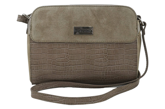 Wnętrze torebki: trzy odrębne komory są zasuwane i wykończone podszewką. W jednej znajduje się mała zasuwana kieszonka, w drugiej kieszeń otwarta mieszcząca telefon, niewielki portfel lub mały notes. Stylowa torebka crossbody trzykomorowa posiada srebrne okucia oraz długi regulowany pasek (maksymalna dł. 136cm, maksymalna wys. 65cm). Klasyczny fason zdobi zamszowa klapka oraz motyw zwierzęcy croco z przodu torebki.