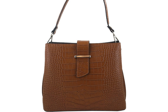 Torebka skórzana na ramię - CROCO - Brązowa jasna