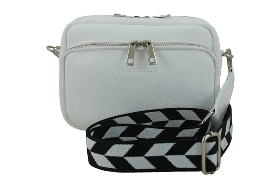 Torebka damska z ozdobnym paskiem biała została wykonana ze skóry naturalnej licowej. Klasyczny fason urozmaicony kolorowym paskiem, pojemną zasuwaną kieszenią z przodu oraz solidne wykonanie wyróżnia ten model listonoszki, która podkreśli stylizacje zarówno swobodne casual, jak i te na wyjątkowe okazje. Torebka damska z ozdobnym paskiem spełni oczekiwania naszych Klientek pod względem jakości produktu oraz uniwersalnego fasonu torebki, która sprawdzi się jako dodatek codziennej garderoby. Zapoznaj się z naszą najnowszą ofertą torebek skórzanych - listonoszek, klasycznych lub wygodnych plecaków. Oferujemy duży wybór produktów galanterii skórzanej Dla Niej i Dla Niego.