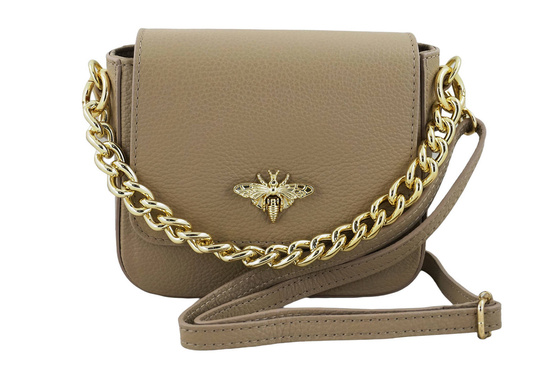 Modna torebka skórzana ze złotym łańcuszkiem - Beżowa