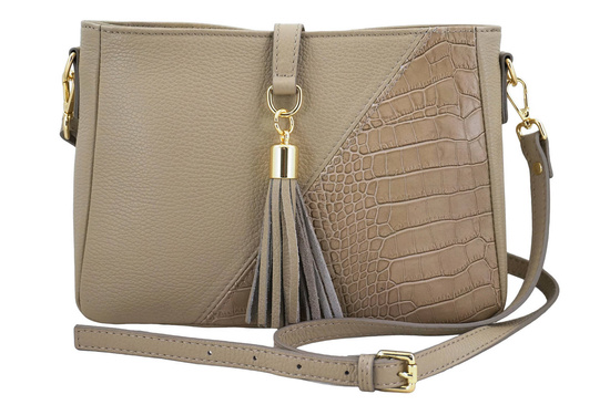 Torebka skórzana z ozdobnym frędzlem - Beżowa