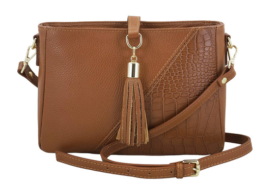 Torebka skórzana z ozdobnym frędzlem - Brązowa jasna