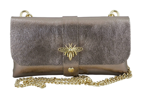 Torebki wizytowe metalizowane w kolorze złotym ciemnym zostały wykonane z naturalnej skóry licowej. Wyjątkowe stylizacje uzupełnią torebki dostępne w naszym sklepie - duży wybór kolorów, najnowsze trendy, ciekawe łączenie różnego rodzaju skór naturalnych oraz delikatne ozdoby. Dostępne w najnowszej ofercie, w kategorii LISTONOSZKI, modne torebki wizytowe metalizowane na złotym łańcuszku to idealny dodatek eleganckiej garderoby. Uniwersalny fason urozmaicony złotymi dodatkami oraz ozdobnie plecioną skórą z obu stron torebki, rozmiarowo idealny aby pomieścić niezbędne rzeczy - telefon, portfel oraz drobne kosmetyki. Nowoczesny design oraz wysokiej jakości skóra naturalna wyróżniają ten model torebki, która będzie idealnym uzupełnieniem stylizacji na spotkanie z przyjaciółmi. Chcesz być informowana o nowej kolekcji, uzupełnieniu magazynowym lub aktualnych promocjach? Zapisz się do naszego newslettera - wraz z informacją o najnowszej kolekcji otrzymasz rabat -15% na zakupy. Skorzystaj z oferty naszego sklepu - gwarantujemy wysoką jakość produktów, solidne wykonanie oraz duży wybór modeli torebek oraz portfeli.