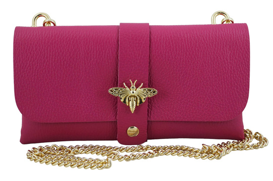 Torebki kopertówki na łańcuszku w kolorze fuksji zostały wykonane z naturalnej skóry licowej. Dostępne w najnowszej ofercie, w kategorii LISTONOSZKI, modne torebki kopertówki na złotym łańcuszku to idealny dodatek eleganckiej garderoby. Uniwersalny fason urozmaicony złotymi dodatkami oraz ozdobnie plecioną skórą z obu stron torebki, rozmiarowo idealny aby pomieścić niezbędne rzeczy - telefon, portfel oraz drobne kosmetyki. Nowoczesny design oraz wysokiej jakości skóra naturalna wyróżniają ten model torebki, która będzie idealnym uzupełnieniem stylizacji na spotkanie z przyjaciółmi. Chcesz być informowana o nowej kolekcji, uzupełnieniu magazynowym lub aktualnych promocjach? Zapisz się do naszego newslettera - wraz z informacją o najnowszej kolekcji otrzymasz rabat -15% na zakupy. Skorzystaj z oferty naszego sklepu - gwarantujemy wysoką jakość produktów, solidne wykonanie oraz duży wybór modeli torebek oraz portfeli.