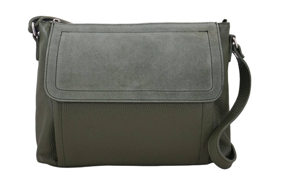 Torebka skórzana z zamszową klapką - Zielona