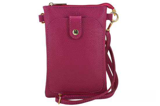 Torebka skórzana / etui na telefon w kolorze fuksja została wykonana ze skóry naturalnej licowej. Skórzane produkty, które czekają na Ciebie w ofercie naszego sklepu internetowego to połączenie trwałości oraz wygody. Są wykonane z dbałością o szczegóły oraz komponują się praktycznie z każdą stylizacją. To propozycja dla kobiet poszukujących modnych akcesoriów skórzanych codziennej i swobodnej garderoby. Torebka skórzana / etui na telefon to praktyczny dodatek galanterii skórzanej na każdy dzień - nie krepuje ruchów, posiada regulowany pasek oraz mieści to co niezbędne - telefon, mały portfel, drobne kosmetyki oraz klucze. Oferujemy wiele modeli torebek na różne okazje oraz portfeli skórzanych, a także szybką i profesjonalną obsługę Państwa zamówienia. Zapisz się do naszego newslettera i odbierz rabat -15% na zakupy.