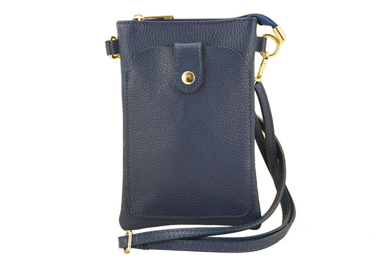 Torebka skórzana / etui na telefon - Granatowe jasne