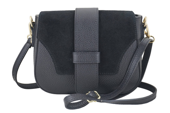 Torebka listonoszka z zamszową klapą - Czarna