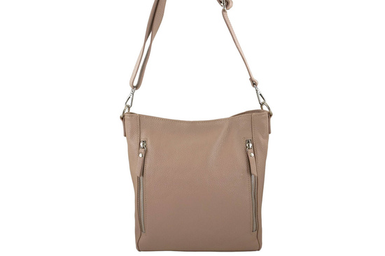 Praktyczna skórzana torebka na ramię - Różowa pudrowa