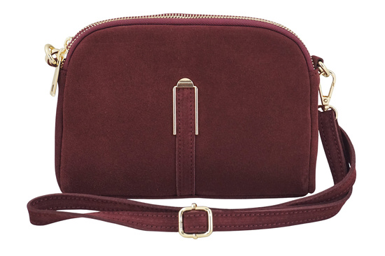 Mała torebka zamszowa wieczorowa w kolorze bordowym została wykonana ze skóry naturalnej. Dodaj szyku każdej stylizacji z tą wyjątkową, skórzaną torebką na ramię. Wykonana z wysokiej jakości skóry zamszowej, zachwyca minimalistycznym designem i subtelną, złotą ozdobą na przodzie, która przyciąga spojrzenia i dodaje luksusowego charakteru. Klasyczny, minimalistyczny design pasujący do wielu stylizacji - mała torebka zamszowa wieczorowa to dodatek, który łączy w sobie elegancję, funkcjonalność i ponadczasowy styl. Stylowa, a zarazem praktyczna – ta torebka to idealny wybór na eleganckie kolacje, przyjęcia czy wieczorne spotkania. Doskonale sprawdzi się o każdej porze roku i w wielu sytuacjach, idealna jako dodatek do casualowych stylizacji.
