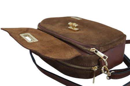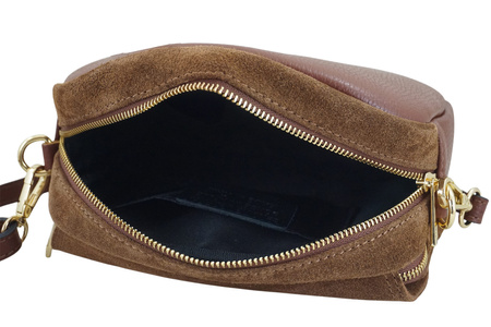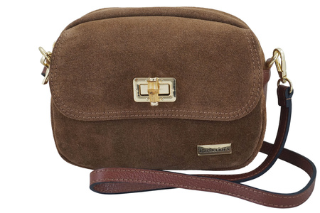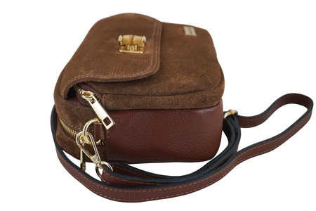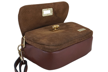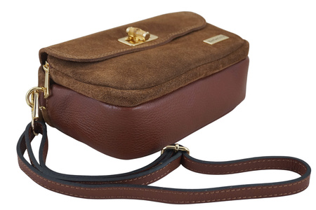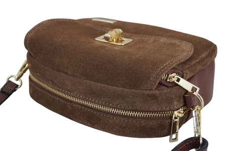 Mała zamszowa listonoszka ze złotym zapięciem - Brązowa