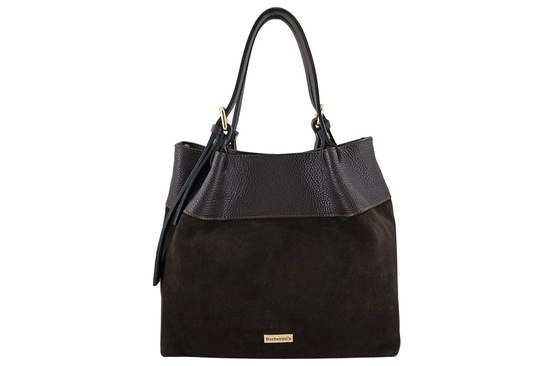 Elegancka torebka damska z naturalnego zamszu w kolorze ciemnego brązu została wykonana z naturalnej skóry zamszowej, harmonijnie połączonej ze skórą licową, co nadaje jej ponadczasowy, szlachetny charakter. Połączenie dwóch faktur sprawia, że model prezentuje się niezwykle stylowo i przyciąga uwagę subtelną elegancją. Dostępna w najnowszej kolekcji elegancka torebka damska z naturalnego zamszu to idealny wybór dla kobiet ceniących wysoką jakość, funkcjonalność i uniwersalny design. Torebka sprawdzi się zarówno na co dzień, jak i podczas spotkań czy wyjść do miasta, pozostając stylowym dodatkiem garderoby. Dzięki klasycznej formie i naturalnej kolorystyce, torebka doskonale komponuje się z wieloma stylami. Świetnie uzupełni codzienne stylizacje z jeansami, swetrem i botkami, eleganckie zestawy z płaszczem, marynarką lub sukienką, oraz styl boho i casual chic.