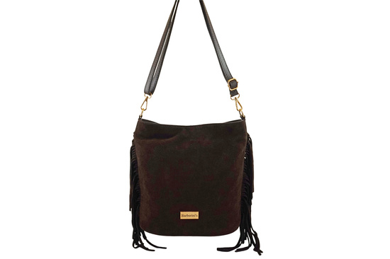 Zamszowa torebka boho z frędzlami - Brązowa ciemna
