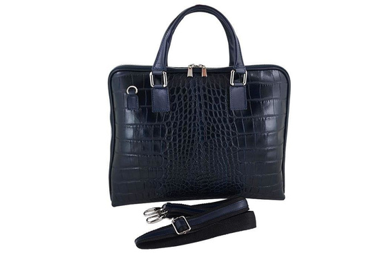 Nasza granatowa torba skórzana na laptopa z efektem krokodylej skóry to doskonałe rozwiązanie dla kobiet, które cenią sobie styl i jakość. Wykonana z najwyższej jakości skóry, ta torba nie tylko zapewnia bezpieczeństwo dla Twojego laptopa, ale również dodaje pewności siebie w każdym środowisku biznesowym. Jej klasyczny design i staranne wykonanie przyciągają uwagę, a przestronne wnętrze pomieści nie tylko laptopa, ale także wszystkie niezbędne akcesoria i dokumenty. Niezależnie od tego, czy zmierzasz do biura, czy na spotkanie biznesowe, nasza granatowa torba damska stanowi doskonały dodatek do Twojej codziennej garderoby, podkreślając Twoją profesjonalność i styl.