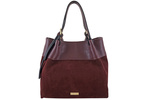 Duża elegancka torebka z naturalnej skóry i zamszu - Bordowa