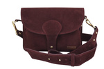 Mała zamszowa listonoszka ze złotym zapięciem - Bordowa